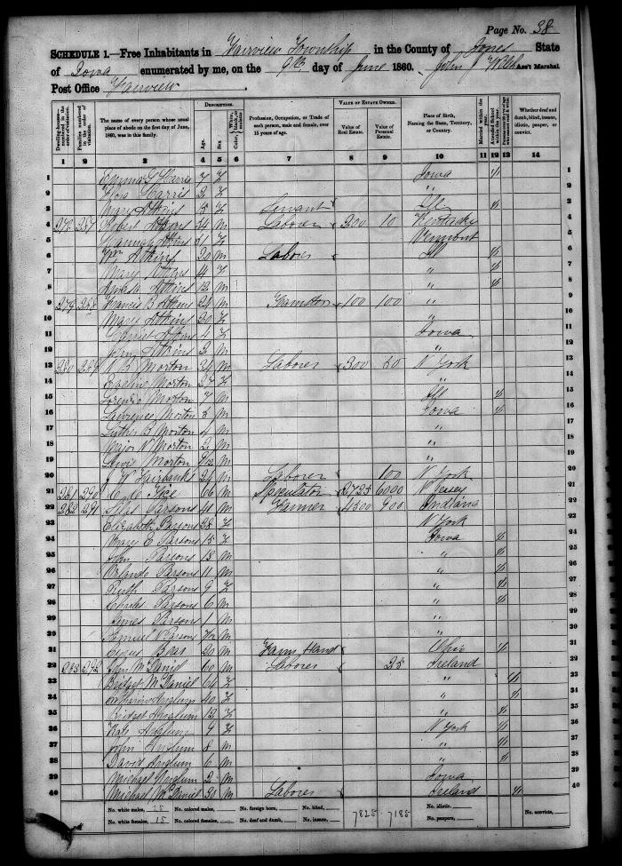 1860 Fairview Township, Jones County, Iowa Census