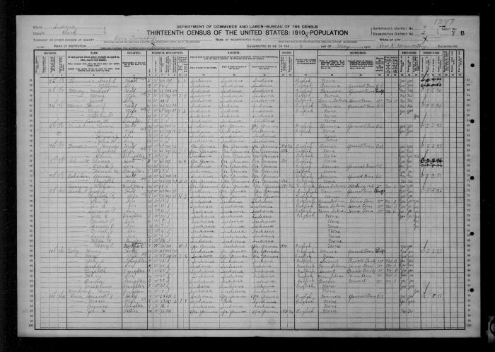 US Indiana Census 1910 - Barney (Benard/Ben) and Elizabeth (Voor) Eshhaker/Eshaker